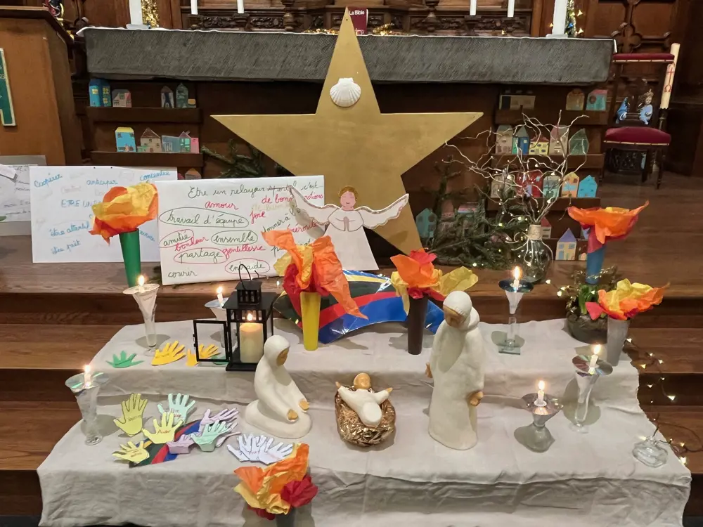 En présence du Père Christophe nous nous rendons à la Chapelle du collège, pour célébrer Noël en suivant le cheminement proposé par l’équipe Pastorale Diocésaine ( Pastofil).